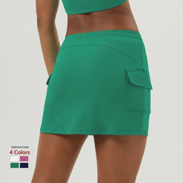 Falda de tenis con leggings incorporados y bolsillos laterales. Favorecedora, transpirable y perfecta para actividades deportivas.