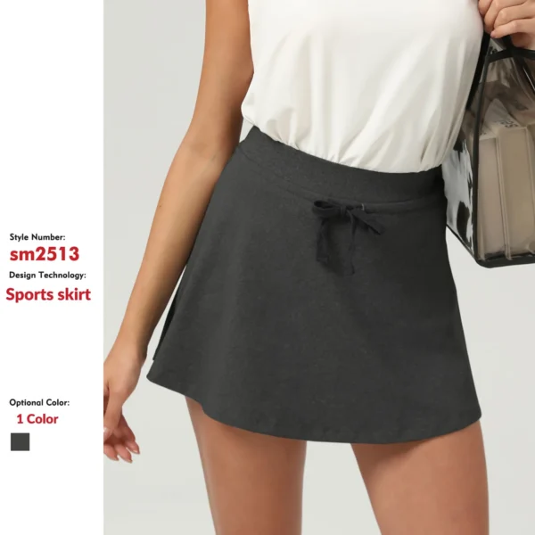 A-line tennis skirt with built-in leggings, moisture-wicking fabric, and secure fit—sporty and stylish.