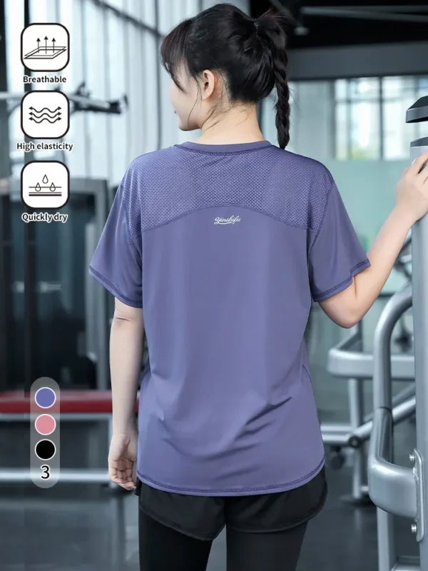 Женские футболки с высокой эластичностью – дышащая сетка для спины, влагоотводящая ткань и круглый вырез. Идеально подходит для тренировок или ежедневной носки. Доступны большие размеры. Идеально подходит для тренажерного зала, занятий спортом или повседневных прогулок.