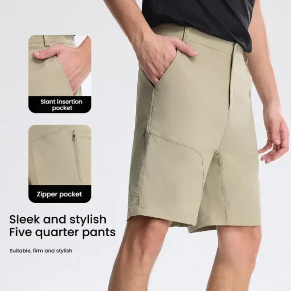 Men’s summer elastic waist quick-dry shorts – loose, breathable 100% polyester for sports, exercise & outdoor comfort.