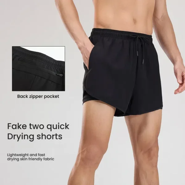 Men’s quick-drying gym shorts with double-layer anti-exposure design – perfect for running, basketball, and summer sports training.